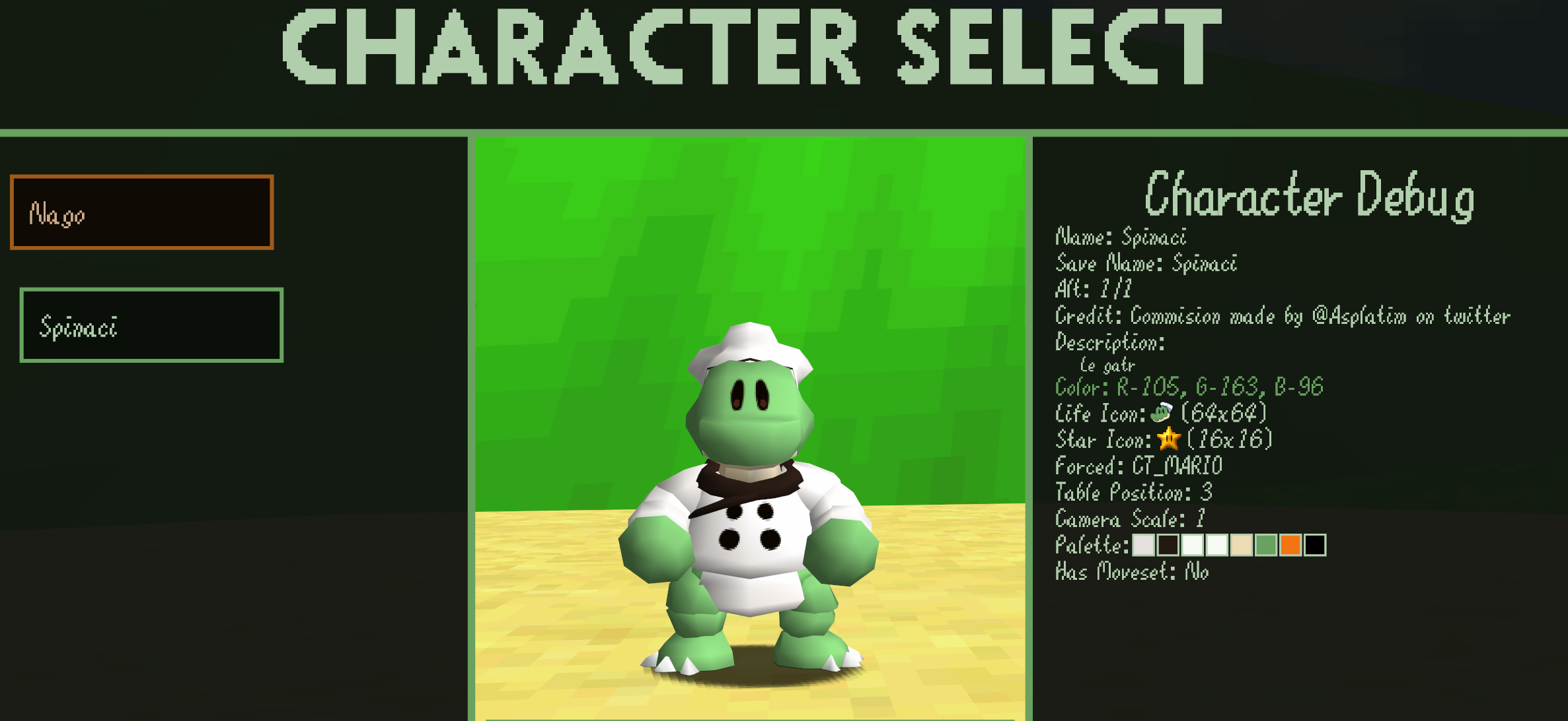 Original Character & Spinaci’s voice by MisterGimmick (MisterGimmick | Twitter, Twitch | Linktree)3D model & mod by Asplatim (https://x.com/ASplatim)