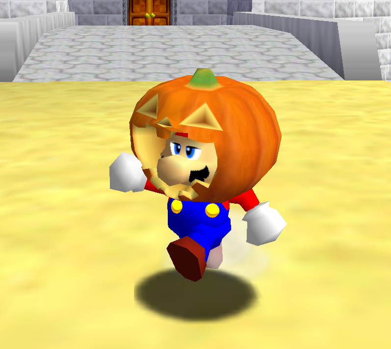 It's almost spooky time, so what's best for Mario to get a pumpkin on his head? (Cape not included)